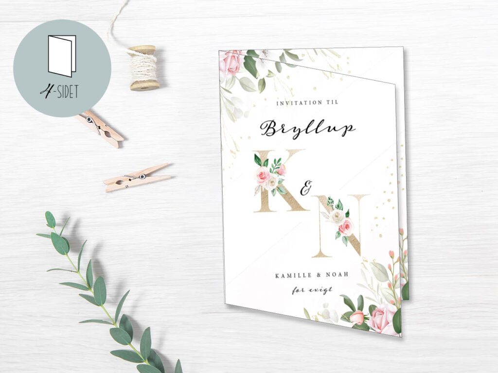 Invitationer til bryllup – 4-sidet Smukt, romantisk og støvede farver Sort, grafisk og stilet Sort, grafisk og stilet Let, lyserød og sommerlig