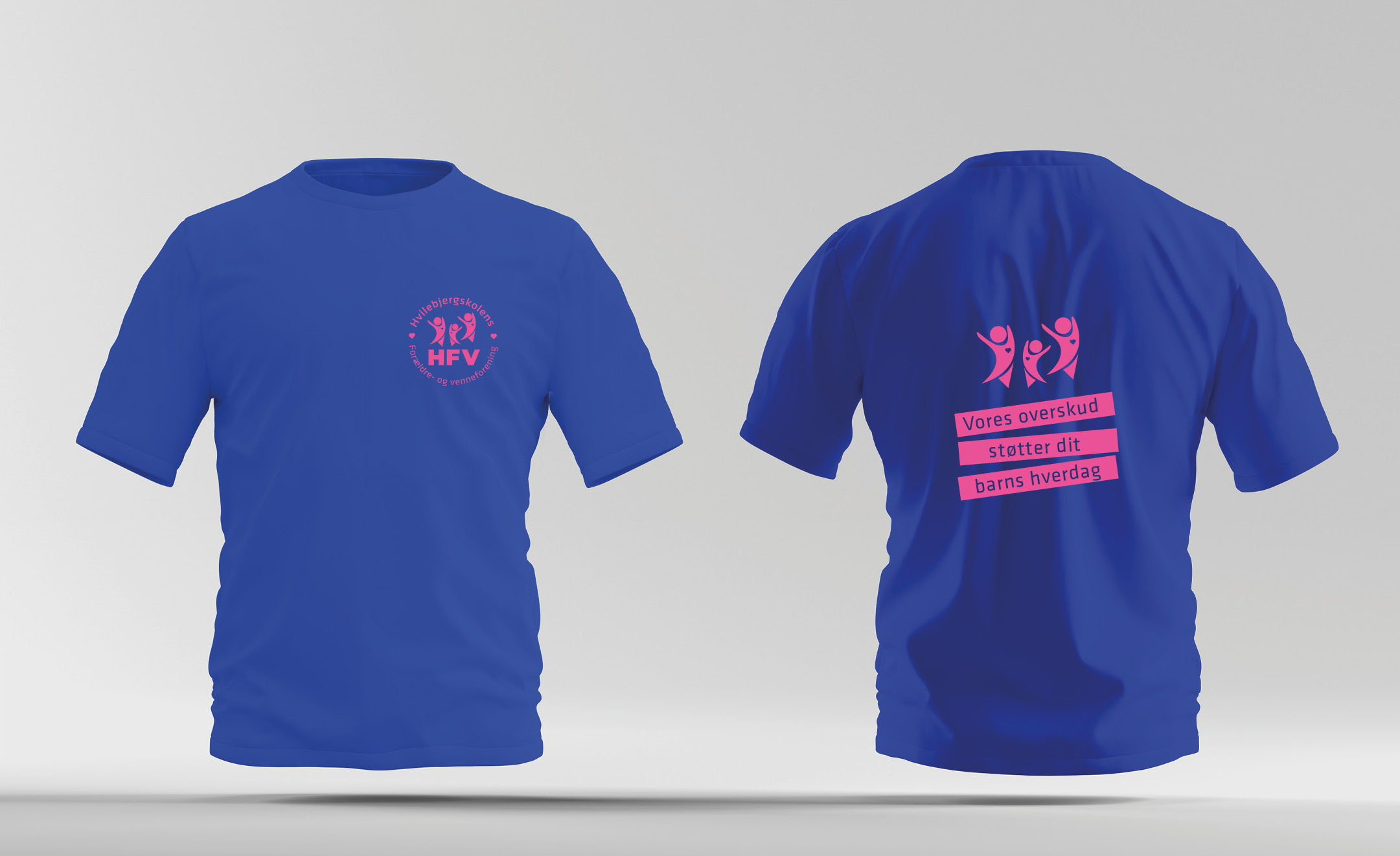 T-shirt, logo og slogan Til Hvilebjergskolens venneforening er designet logo, slogan og udformet T-shirts