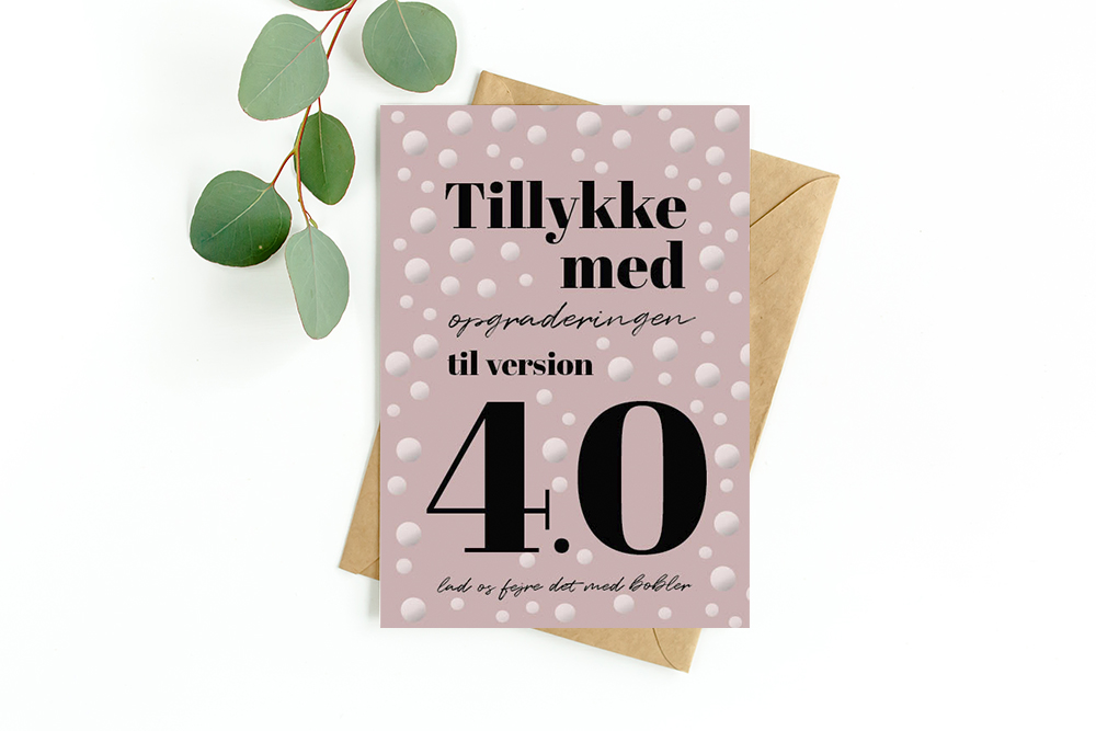 Kort “Tillykke med ograderingen til version 4.0”