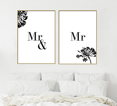 Mr & Mr plakater i sort og hvid med grafisk illustration. Leveres i sæt bestående af 1 stk. Mr. & og 1 stk. Mr. plakat i den valgte størrelse.