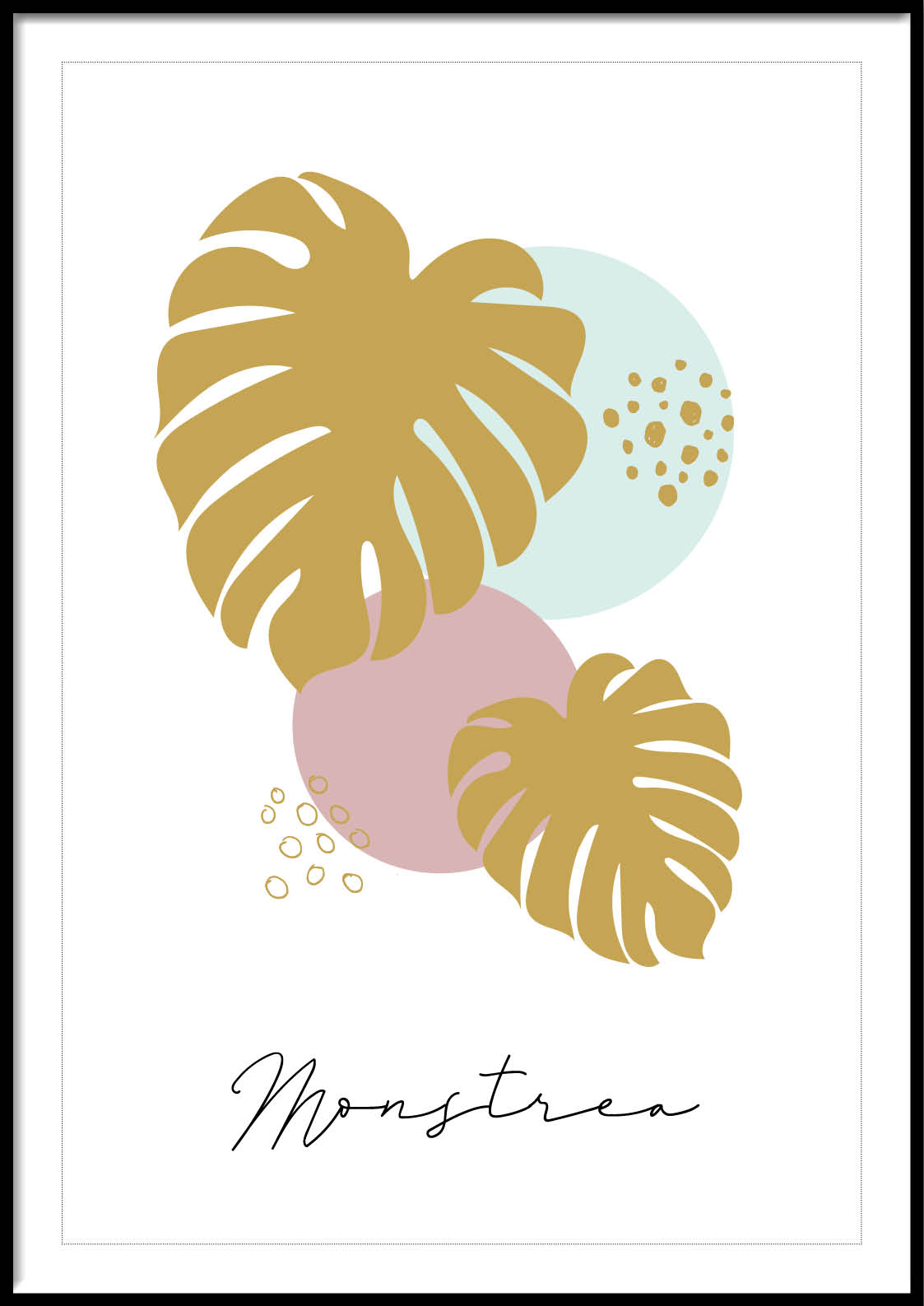 Mangler du plakater til køkkenet, stuen eller soveværelset? Så er stil-plakater som dette motiv et must have. Grafisk gengivelse af de smukke monstrea-blad kombineret med pasteller og grafisk illustration.