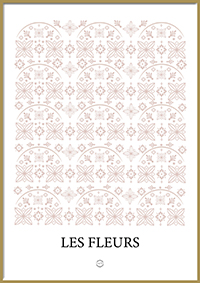 Grafisk plakat med grafiske blomster-elementer og flot sart farve.